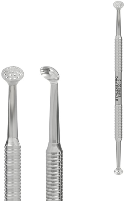 Expert 20 Type 2 ZE-20/2 (Z7-51-02) — двосторонній косметологічний інструмент, має дві робочі частини: ложка УНО та кругла шумівка 19 отворів та призначена для чищення дрібних поверхневих комедонів.