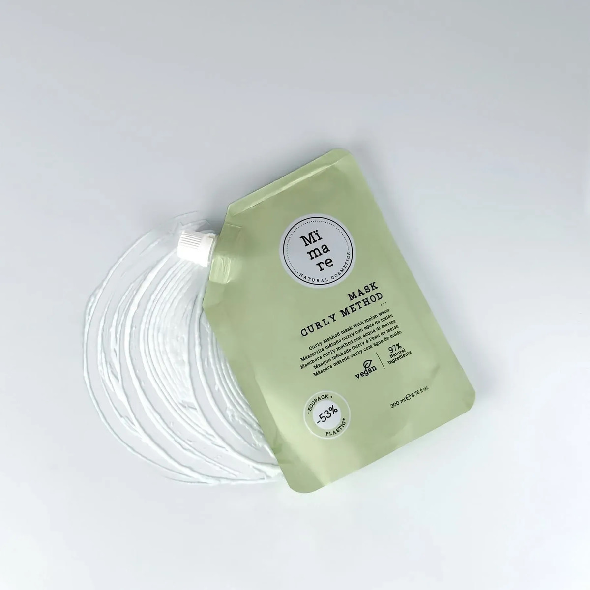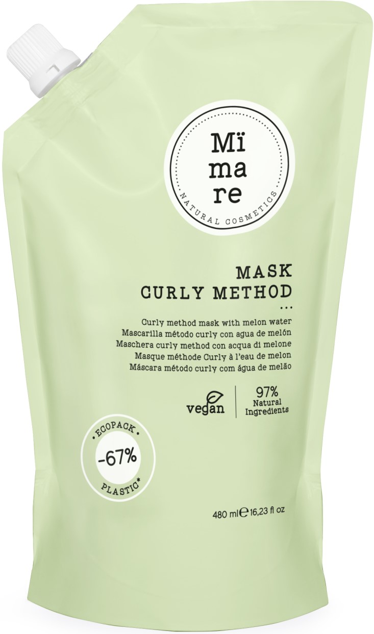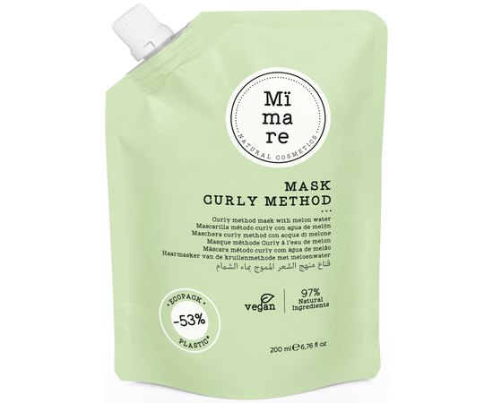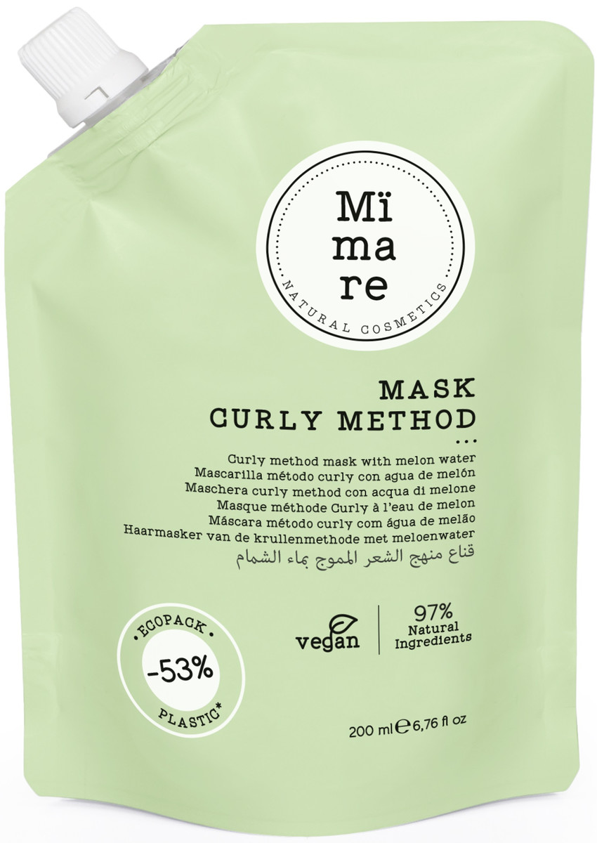 Mimare Curly Method Mask - дарує кучерям інтенсивне зволоження, живить їх зсередини і відновлює на клітинному рівні. Все завдяки особливій формулі з екстрактом дині, цільним рисовим молоком та алое вера, які працюють у гармонії, надаючи локонам те, що їм потрібно.