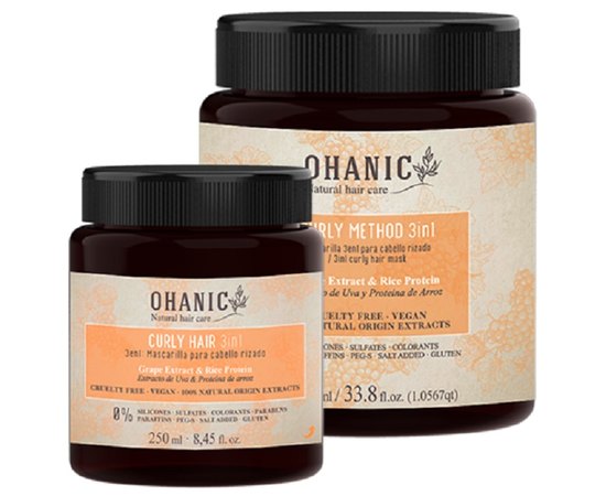 Ohanic Curly Method — 3 in 1 Curly Hair Mask — маска для кучерявого волосся. Вона глибоко зволожує, зміцнює, відновлює волосся, усуває небажану пухнастість, надає блиску та шовковистості. Це багатофункційний продукт, який можна використовувати як маску, як кондиціонер і як догляд за волоссям, що не треба змивати.