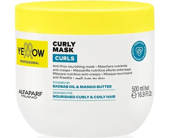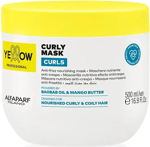 - Ця маска для кучерявого волосся від Yellow розгладжує, живить і зволожує ваші локони. Її багата текстура збагачена натуральними компонентами, такими як олія манго та баобаба. Ці олії збагачують волосся вітамінами Е, D, F, A, амінокислотами та бета-каротином.
