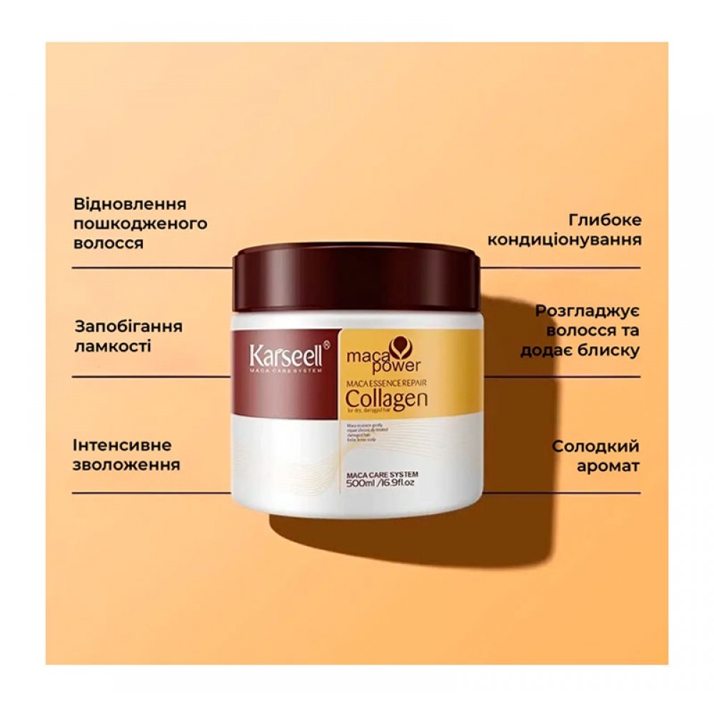 Маска для сухого та пошкодженого волосся Karseell Maca Essence Repair Collagen Hair Mask, 500 ml