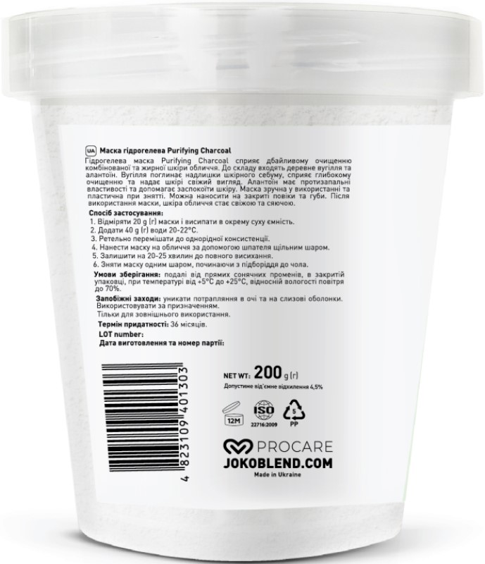 Особливості маски гідрогелевої Purifying Charcoal Joko Blend 200 г: