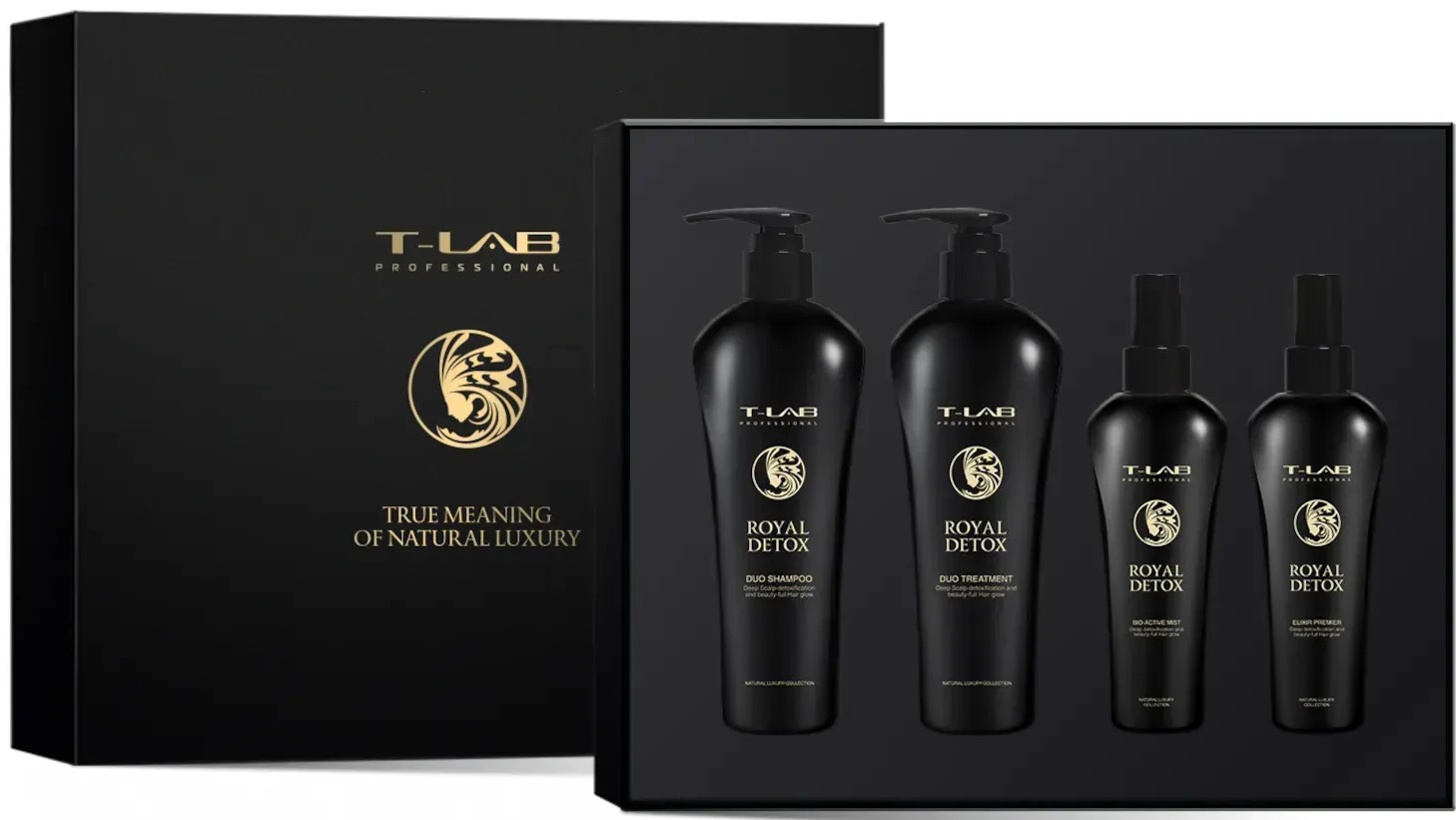 - Шампунь для глибокої детоксикації шкіри голови - T-Lab Professional Royal Detox Duo Shampoo Акуратно втирайте шампунь в шкіру голови і волосся для розкішного живлення, щоб розгладити вологу кутикулу волосся. Промити шкіру голови і волосся великою кількістю води; повторіть при необхідності.