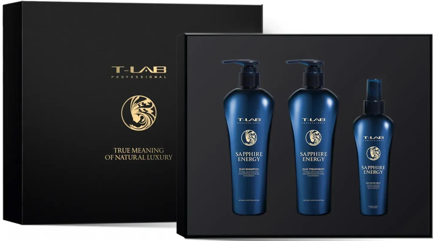 Sapphire Energy Ritual - це коли волоссю надається максимальна турбота, починаючи їх очищенням і живлення, закінчуючи відновленням і антивіковим ефектом. Завдяки застосуванню продукції від британського бренду T-Lab Professional результат від виконання схожих процедур обіцяє бути негайним і візуально помітним. Якщо ви хочете дарувати своїм пасмам комплексний догляд, то цей набір - оптимальне рішення. Він включає тріо професійних косметичних засобів, які в повній мірі задовольнять потреби навіть найбільш вибагливих локонів і будуть цінним джерелом «сапфірової енергії»!