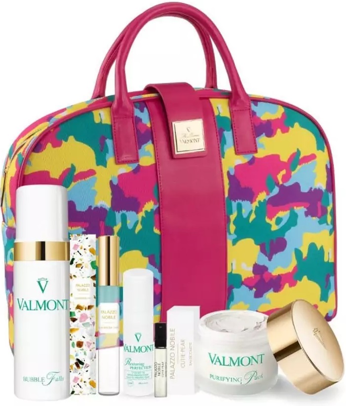 Ексклюзивний набір Valmont April з розкішною сумкою та преміальними засобами догляду: очищувальна маска, пінка, відновлюючий крем SPF50, а також витончені аромати Cutie Pear і Casanova 2161. Ідеальний вибір для тих, хто цінує бездоганний стиль і ефективний догляд.