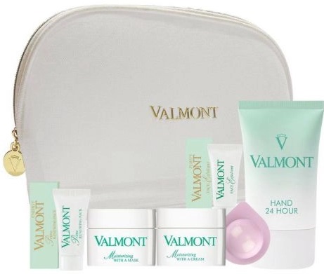 Valmont Institutionnal Set M — це вишуканий набір, у якому зібрані найулюбленіші засоби швейцарського бренду Valmont у компактному форматі. Косметичка містить засоби для очищення, ексфоліації, зволоження, заспокоєння та живлення шкіри, а також легендарний крем для рук. Ідеальний варіант як для подорожі, так і для знайомства з брендом.