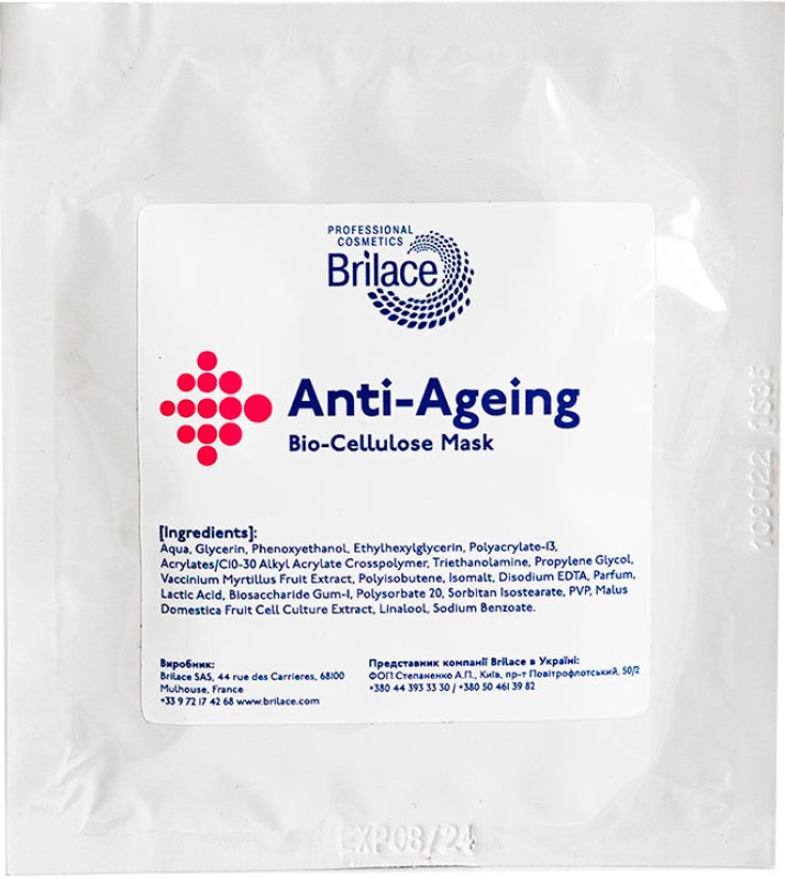 Омолоджуюча біоцелюлозна маска Brilace Des Soins Professionnels Anti-ageing Bio-Cellulose Mask, 1 piece