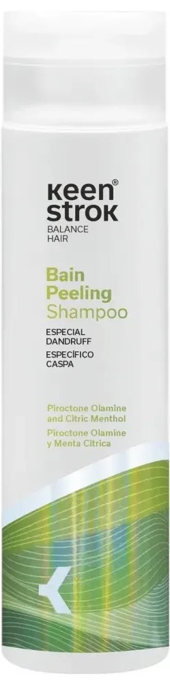 Keen Strok Шампунь-пілінг для волосся з жирною та сухою лупою. Шампунь відновлює природний баланс шкіри голови та видаляє залишки лупи. Формула містить піритіон цинку, який регулює лупу, та ментол, цитрусовий, який м'яко очищає волосся та надає йому освіжаючого аромату.