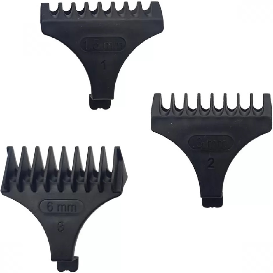 У комплекті з тримером Sway Quiff постачаються змінні пластикові насадки з висотами зрізу 1,5 мм, 3 мм та 6 мм. Ці насадки допомагають зробити плавний перехід при стрижці бороди, що дозволяє створити ідеальний образ для клієнта.