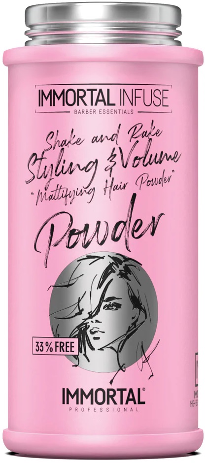 Пудра Immortal Infuse Volume забезпечує природний матовий ефект для волосся тим, хто хоче укласти волосся без використання густих гелів або помад.