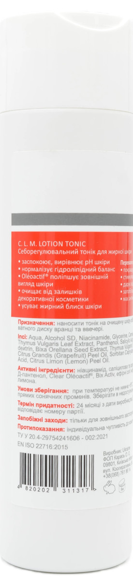 Себорегулюючий тонік для жирної шкіри MedActive С. L. M. Lotion Tonic Oily & Skin