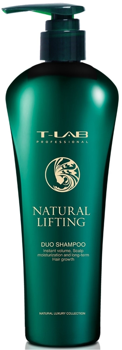 Розкішний засіб для розкішного волосся T-LAB Professional Natural Lifting Duo Shampoo! Б'юті-продукт серії Natural Lifting подарує не лише ідеальну чистоту. Серед властивостей шампуню – інтенсивне харчування та глибоке зволоження, стимуляція росту здорового волосся, регенерація, захист від ламкості, збільшення об'єму, дивовижне сяйво локонів.