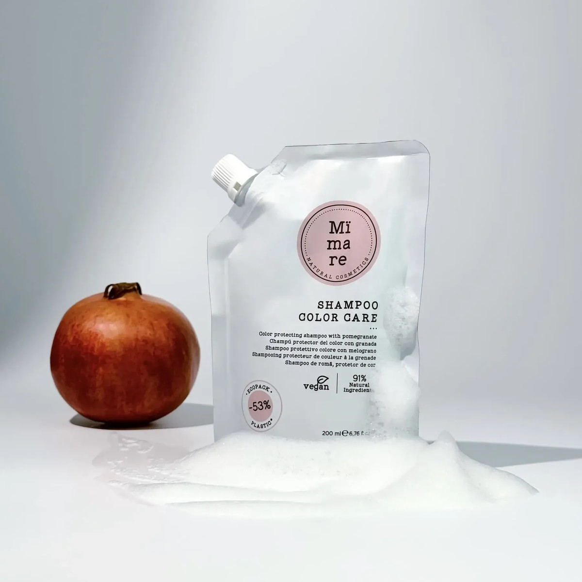 Шампунь для захисту кольору з гранатом Mimare Color Care Shampoo допоможе вам ефективно доглядати за фарбованим, знебарвленим або хімічно обробленим волоссям. Шампунь для фарбованого волосся Mimare Color Care Shampoo має унікальну формулу, яка надає локонам інтенсивний догляд і надійний захист.