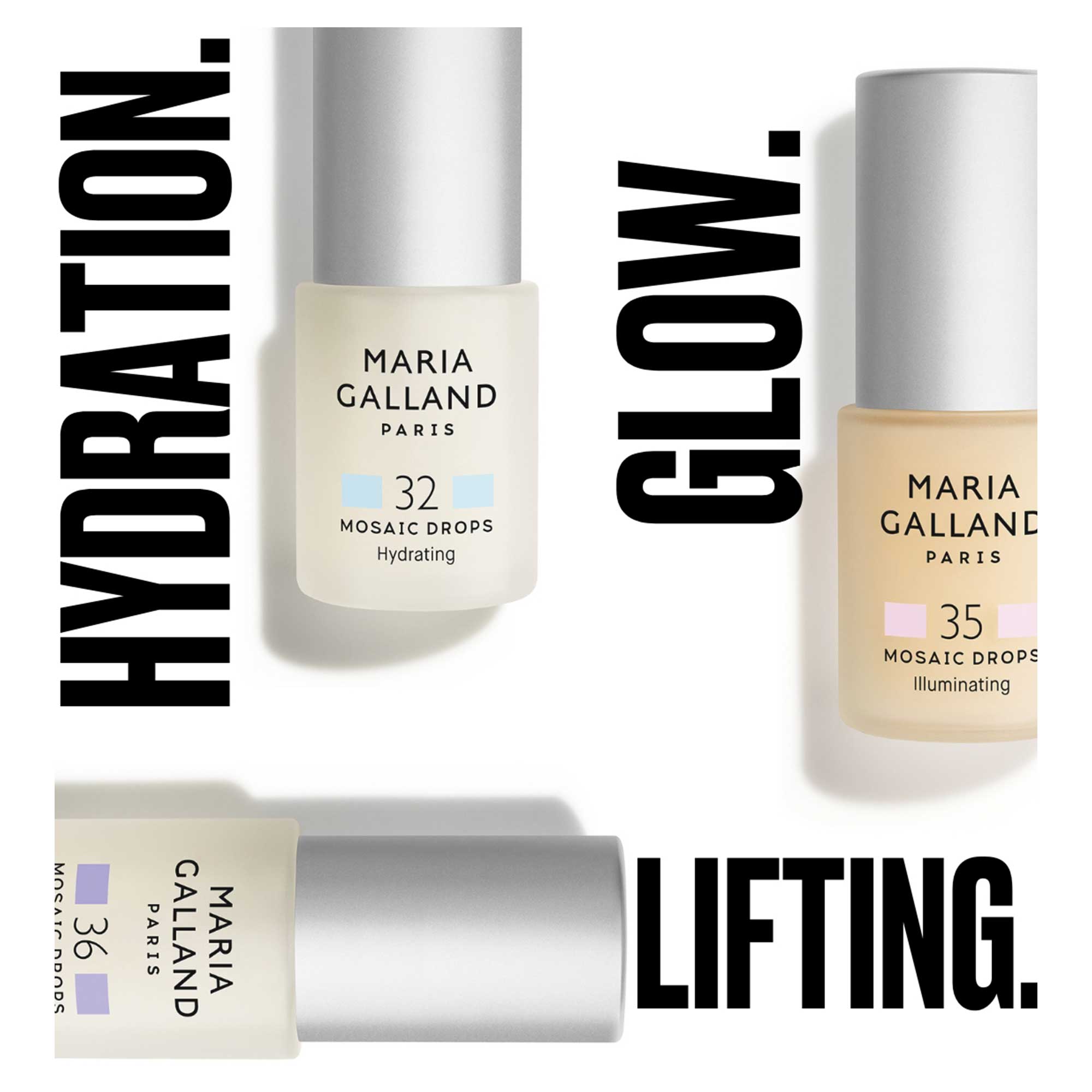 Сироватку можна використовувати окремо або змішувати та поєднувати з двома іншими 32 MOSAIC DROPS HYDRATING і 36 MOSAIC DROPS LIFTING, наносячи на різні зони, як мозаїку.
