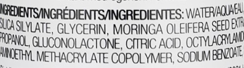 Склад: Silica Silylate, Glycerin, Moringa Oleifera Seed Extract, Water, Propanol, Gluconolactone, Citric Acid, Octylacrylamide, Aminoethyl Methacrylate Copolymer, Sodium Benzoate