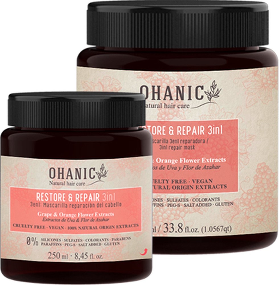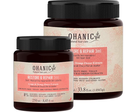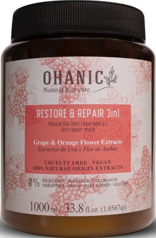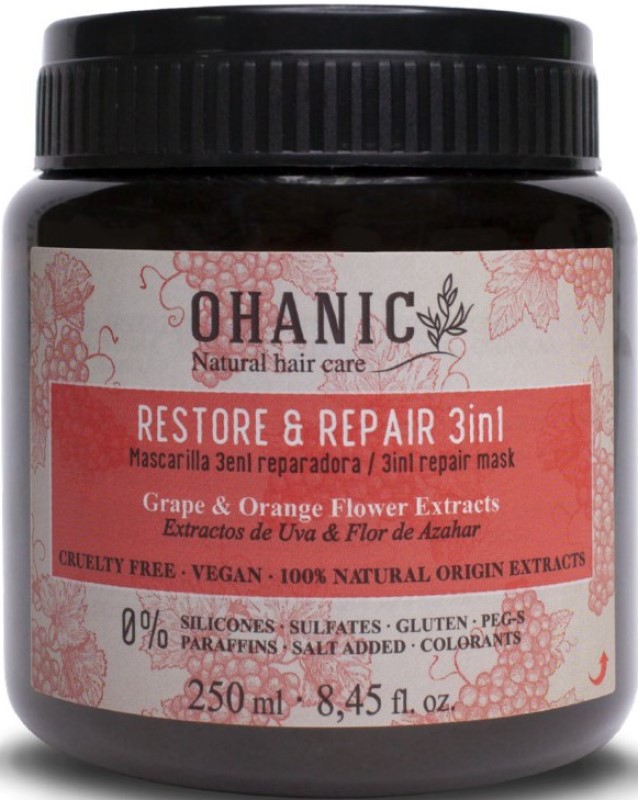 Ohanic Restore & Repair 3 in 1 Repairing Mask — відновлювальна маска для сухого та пошкодженого волосся. Вона зволожує, зміцнює, оздоровлює, надає блиску. Це багатофункційний продукт, який можна використовувати як маску, як кондиціонер та як догляд за волоссям, що не треба змивати.