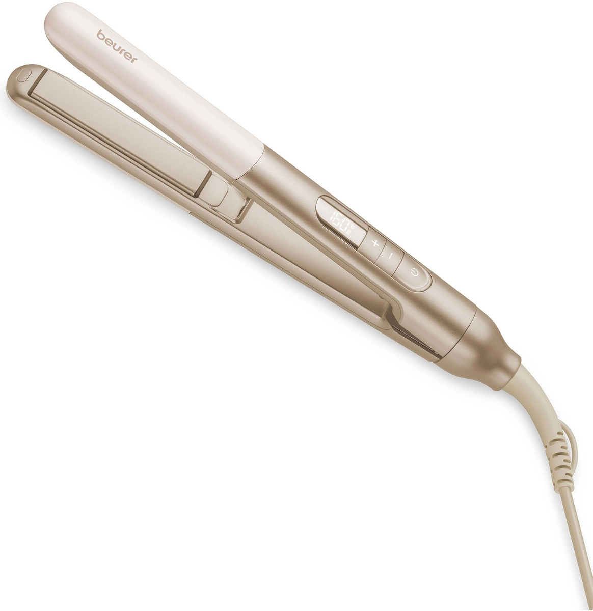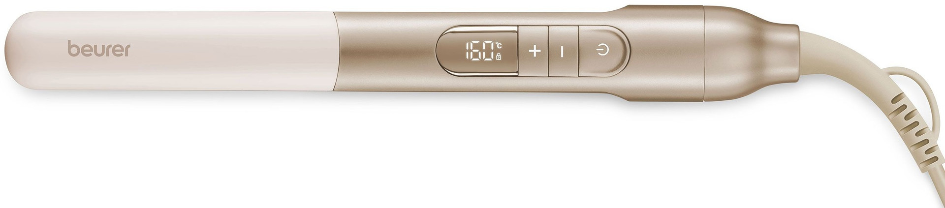 Випрямляч Beurer HS 70 із дизайнерської серії HairCare поєднує інновації, преміальний дизайн та абсолютну досконалість у стайлінгу. Витончений бежево-золотистий корпус виглядає розкішно і елегантно. Прекрасний варіант для подарунку. Керамічні пластини з іонізацією рівномірно розподіляють тепло та захищають волосся від перегріву та пошкоджень. Завдяки цьому, волосся залишається гладеньким, м’яким та блискучим як після салонної укладки. Іонна технологія усуває статичну електрику та полегшує розчісування, надає волоссю доглянутого вигляду. Налаштувати потрібний рівень нагрівання легко завдяки температурному діапазону від 100°C до 220°C. Обраний режим чітко відображається на LED-дисплеї, а функція блокування кнопок захищає від випадкових натискань під час користування. Миттєвий нагрів дозволяє розпочати стайлінг за кілька секунд – це ідеальний вибір для тих, хто цінує свій час. Закруглені пластини підходять для випрямлення і для створення ніжних локонів та хвиль.