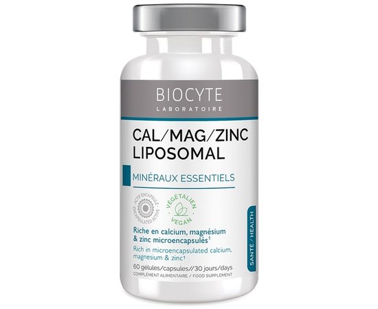 Вітаміни для зміцнення кісток, нервової системи та когнітивної функції Biocyte Cal/Mag/Zinc Liposomal, 60caps