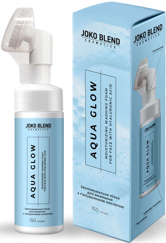 Зволожувальна пінка для вмивання з гіалуроновою кислотою Aqua Glow Joko Blend™ 150 мл делікатно очищає шкіру від забруднень та макіяжу. Її легка, повітряна текстура м'яко видаляє забруднення, надлишки себуму та залишки макіяжу, не обтяжуючи і не пересушуючи шкіру. Завдяки ніжній формулі, пінка дарує шкірі відчуття свіжості та комфорту, залишаючи її гладенькою, зволоженою і підготовленою до наступних етапів догляду.