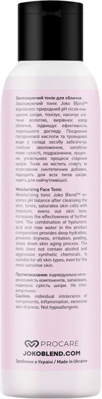 Використання декоративної косметики, погана екологія, неправильне харчування і недосипання, стреси негативно впливають на стан і зовнішній вигляд шкіри, в результаті чого можуть з'явитися такі проблеми, як почервоніння, лущення та свербіж. Зволожуючий тонік для обличчя Joko Blend спеціально розроблений, щоб нейтралізувати негативні фактори, які впливають на шкіру, відновити її природний pH після очищення і підготувати до нанесення основного догляду.