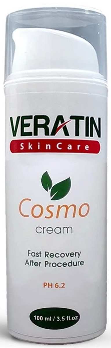 - После лазерного воздействия и эпиляции оказывает успокаивающее и заживляющее действие. После завершения процедуры нанести крем Veratin Cosmo равномерно на подвергшийся воздействию участок кожи. В постпроцедурный период наносить не менее 2 раз в день.