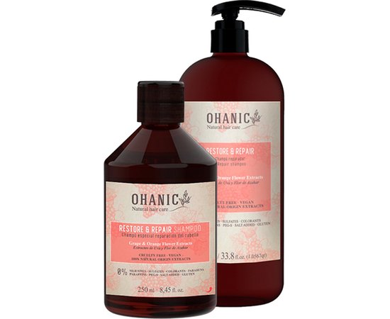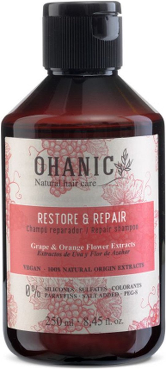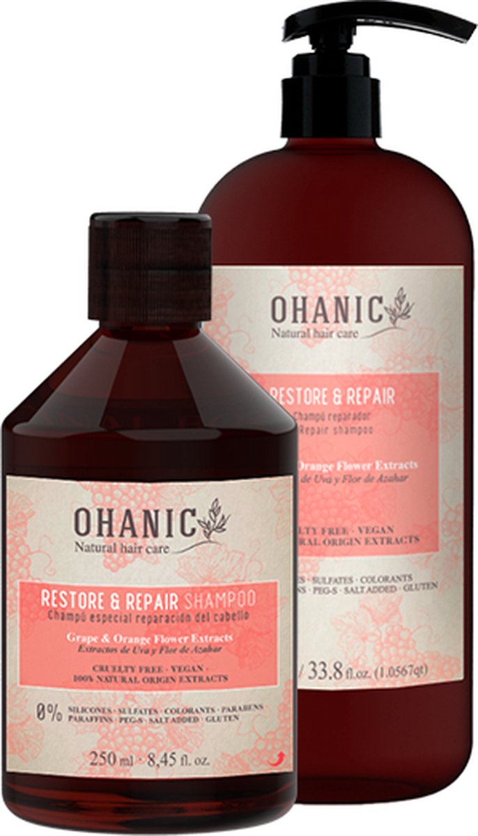 Ohanic Restore & Repair Shampoo – восстановительный шампунь для волос. Он бережно очищает, увлажняет, укрепляет, лишает ломкости и секущихся кончиков. После мытья волосы упругие и шелковистые.