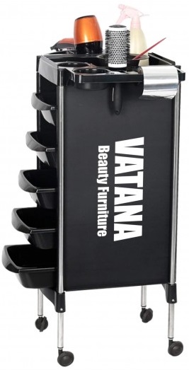 - Тележка парикмахерская для салонов красоты на 5 рабочих отделений Vatana 578-003 позволит упорядочить ваши парикмахерские принадлежности и аксессуары; Эта вспомогательная тележка является простым решением для хранения ваших инструментов в салоне.