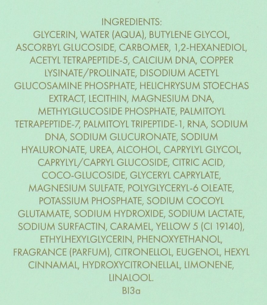- Комплекс плотности. Мощное сочетание витамина С, аминокислот лизина и пролина, необходимые для стимулирования выработки коллагена, производного глюкозамина для увлажнения, экстракта цветков бессмертника для оптимальной когезии компонентов дермы и меди, незаменимой для синтеза коллагена и эластина.