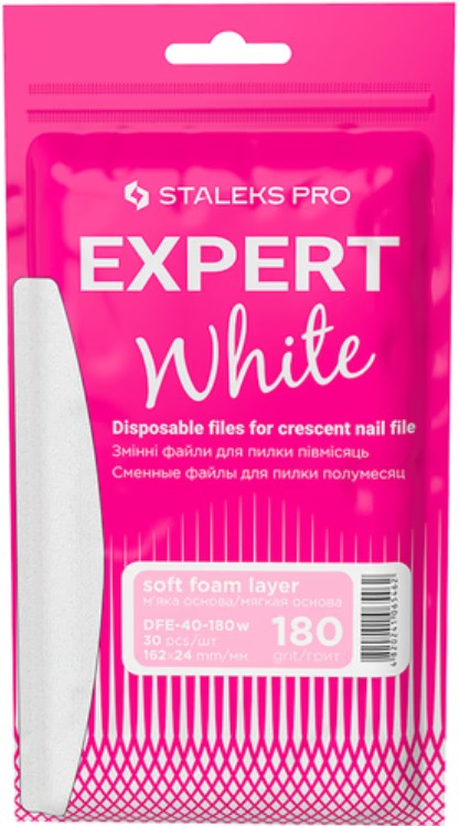 Сменные белые файлы для пилы полумесяц на мягкой основе Staleks Pro Expert 40, 30 pcs