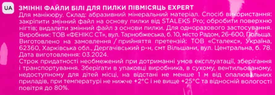 - Белый цвет файла более гигиеничен черного в работе, на пиле не видно полос или борозд после опыления, а также светлые абразивные частицы не заметны при попадании на искусственный материал при наращивании ногтей.