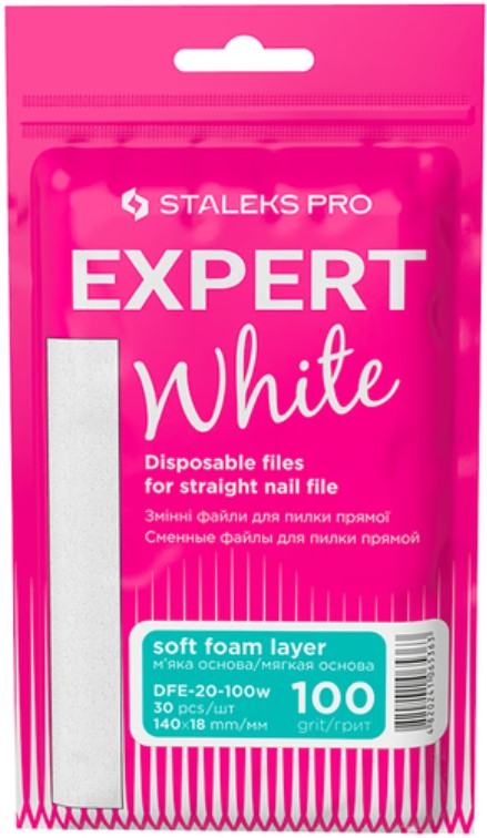 Сменные файлы белые для пилы прямой на мягкой основе Staleks Pro Expert 20, 30 pcs