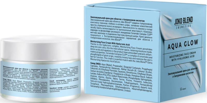 Активные компоненты увлажняющего крема для лица с гиалуроновой кислотой Aqua Glow Joko Blend 50 мл: